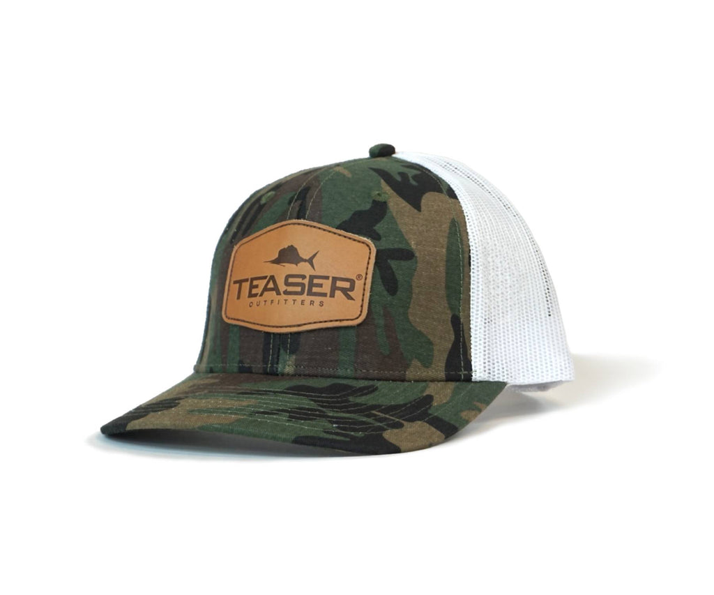 Our Teaser Custom trucker cap in Camo style and leather patch is comfortable everywhere! The quality and fit you’ve come to expect, this hat is sure to please.